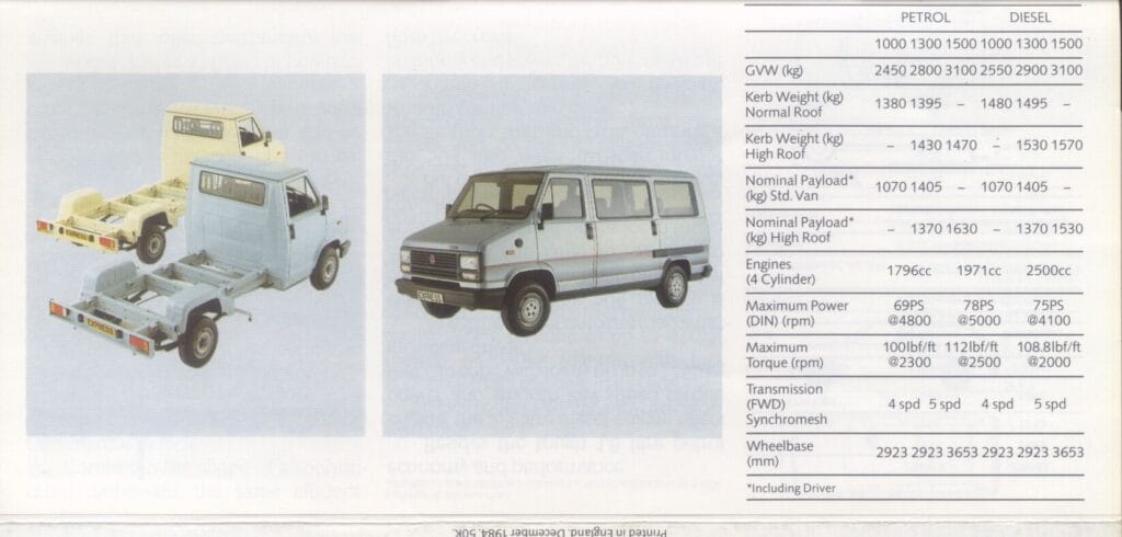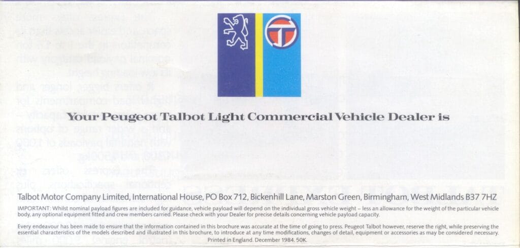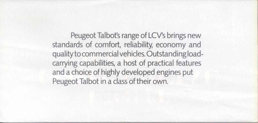 1985 Lichte Bedrijfswagen Gamma/Gamme Utilitaires Legeres/Light Commercial Range Brochure GB (RHD)